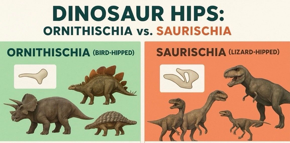 Dinosaurs are often grouped by the shape of their hips! Some had bird-like hips, with bones shaped more like modern birds. Others had lizard-like hips, more like the reptiles we know today. Check out the charts below to see which dinosaurs had which hip type.